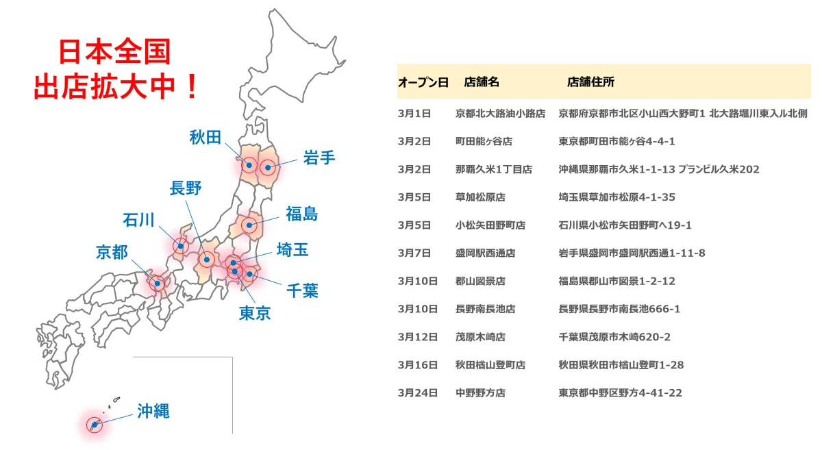 2026年3月、ニコニコレンタカーを運営する株式会社レンタスと店舗開発を手掛ける株式会社MICは、全国に11店舗を新たにオープンしました。これにより、同社の店舗数は1453店舗に達し、急成長を続けています。