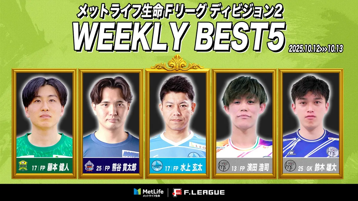 週間ベスト5には水上選手の他にも多くの才能あふれる選手たちが選ばれています。デウソン神戸の藤本健人選手、アグレミーナ浜松の熊谷貫太郎選手、ミラクルスマイル新居浜の濱田浩司選手、そして同じくミラクルスマイル新居浜から鈴木雄大選手が選ばれました。