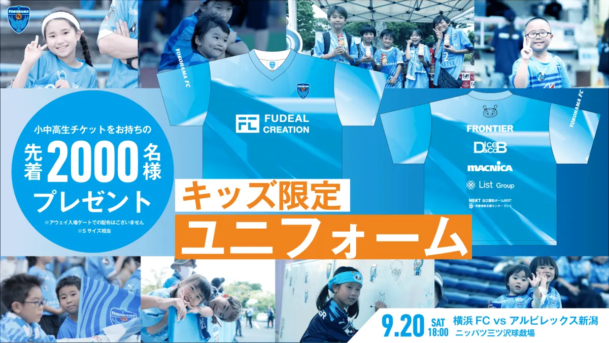 9月20日、横浜FCと共に熱いサポートの中で、特別なキッズユニフォームを手に入れるチャンスです。家族や友人と一緒に、ゲームの熱気に包まれながら、忘れられない思い出を作りましょう。皆さまのご来場を心よりお待ちしております!