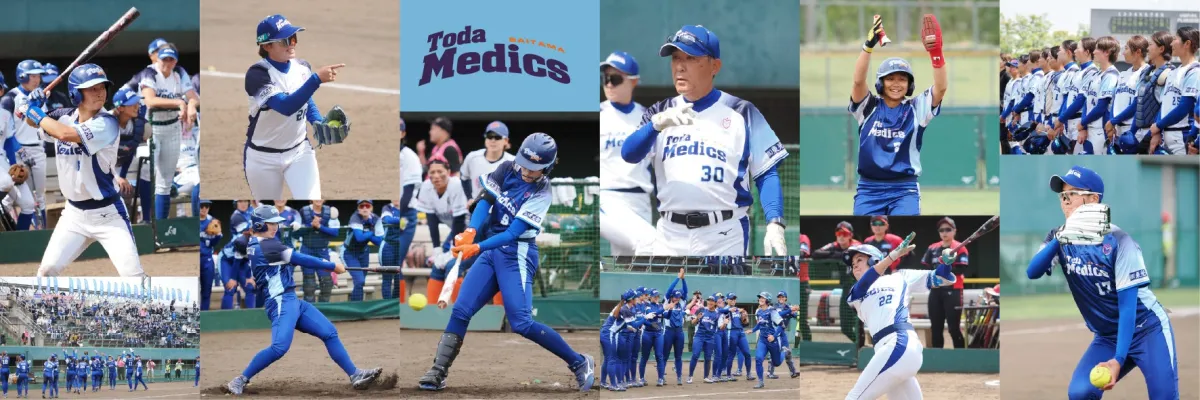 「戸田中央メディックス埼玉」は、戸田中央メディカルケアグループが運営する女子ソフトボールチームで、ここ数年そのパフォーマンスは目を見張るものがあります。現チームは、後藤希友投手と増田侑希投手を中心に、昨シーズン最多打点王を獲得した坂本結愛選手を迎えた最強打線が揃い、観戦に来るファンを魅了しています。