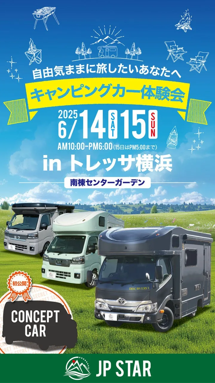 2025年6月の中旬、横浜のトレッサ横浜で待望のキャンピングカー体験会が開催されます。これは、JP STARブランドで知られるMoon Star Export株式会社が主催し、アーリーサマーをテーマにした特別なイベントです。開催日は6月14日(土)と15日(日)で、会場となるのはトレッサ横浜の南棟センターガーデンです。