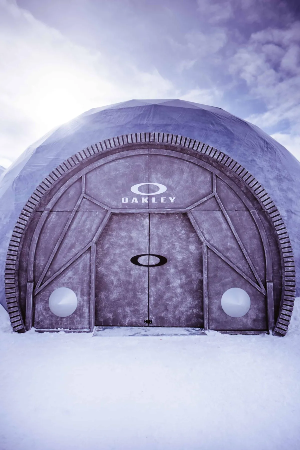 Flowparkの麓には、「Oakley Outpost」が待ち構えています。このドーム型の建物は、ブルータリズムデザインを基にしたもので、オークリーのアイデンティティを見事に具現化しています。訪れた人々は、過去・現在・未来が交錯するこの空間で、オークリーの革新を体感できます。
