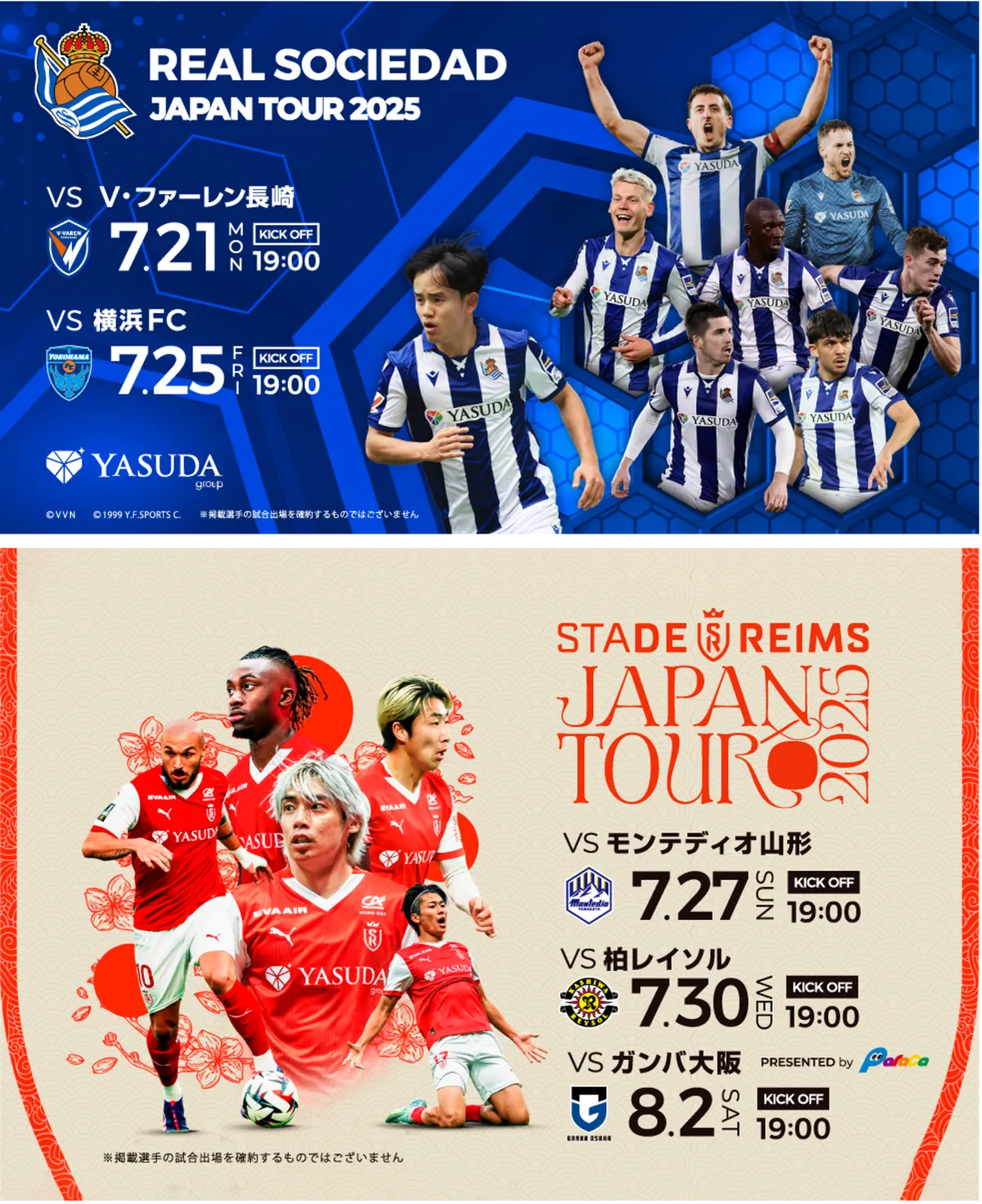 2025年には、レアル・ソシエダとスタッド・ランスが日本でそれぞれのツアーを開催します。対象試合は次の通りです: