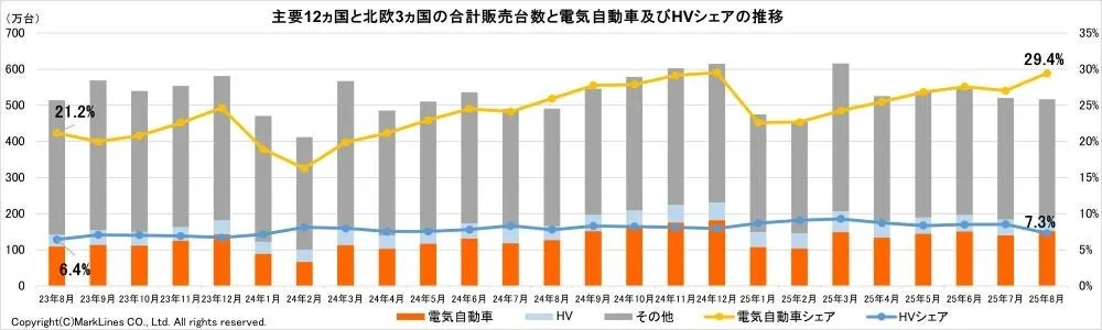 2025年8月、マークラインズ株式会社が発表した電気自動車(BEV/PHV/FCV)の販売月報によると、主要15カ国の市場における販売動向は依然として好調です。本記事では、その詳細を探ります。