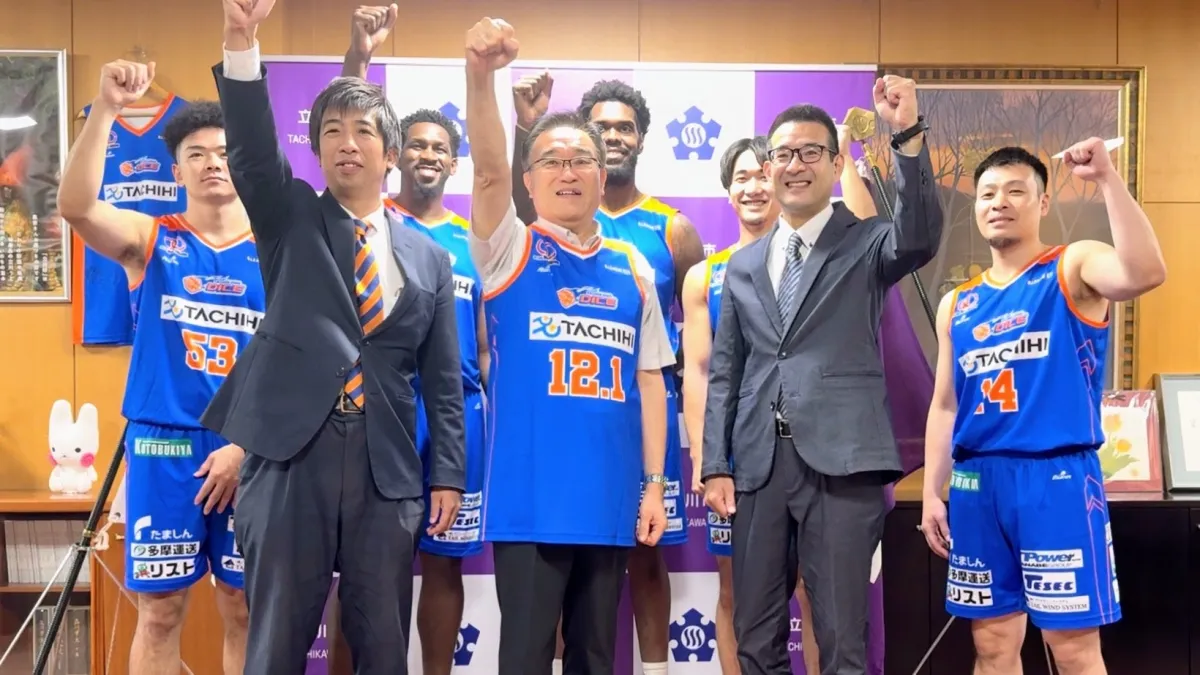 令和7年9月16日、東京都立川市の男子プロバスケットボールチーム「立川ダイス」の代表者たちが、立川市長を訪問しました。この訪問には、原宏樹社長や間橋健生ヘッドコーチをはじめ、選手たちも参加し、全8名での表敬訪問となりました。