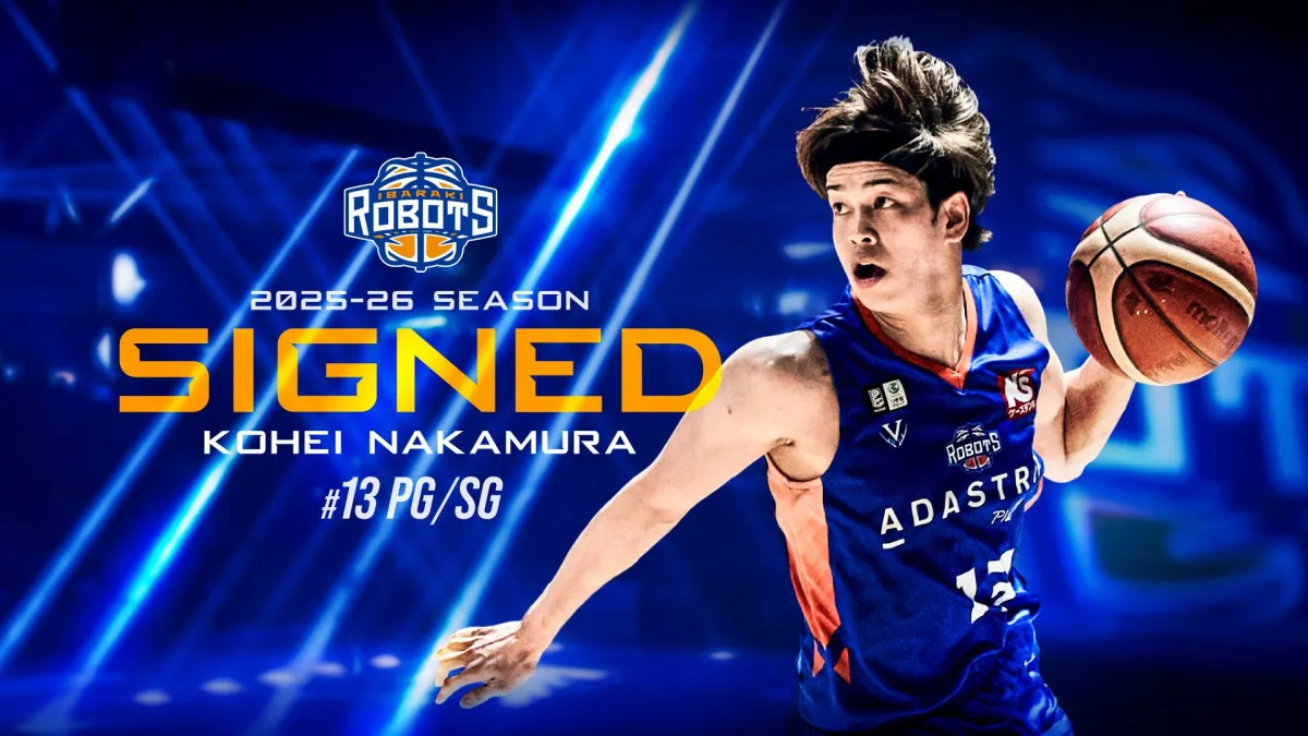 2025-26シーズンに向け、茨城ロボッツは中心選手である中村功平選手との契約が合意に達したことを発表しました。中村選手は181cm、76kgの体格を持ち、ポジションはポイントガード(PG)とシューティングガード(SG)です。彼は1996年生まれ、山口県出身。中央大学を経て、2018年から滋賀レイクスターズでキャリアをスタートし、2020年から茨城ロボッツでプレーしています。