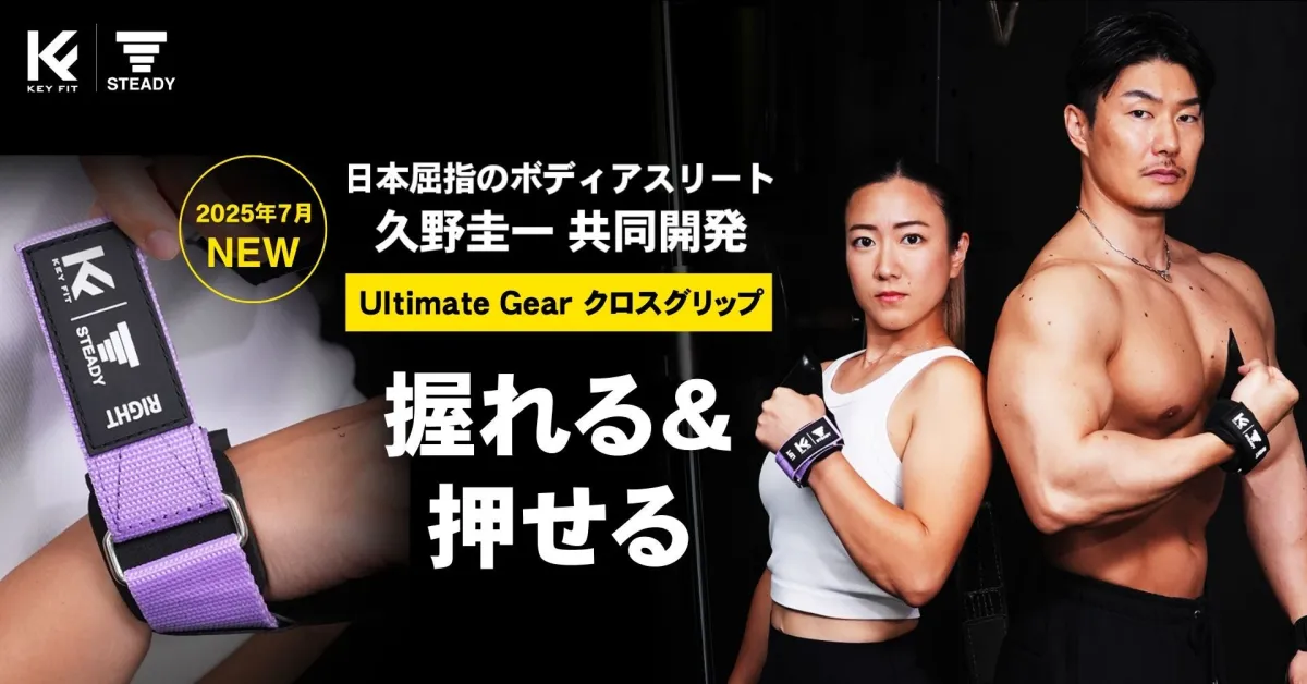 人気ボディアスリートの久野圭一選手とのコラボレーションで生まれた「STEADY Ultimate Gear クロスグリップ」に新色ラベンダーが加わります。この新色は、2025年7月1日より販売を開始し、さらにサイズ展開も充実した製品として、お洒落で機能的なトレーニングを提供します。