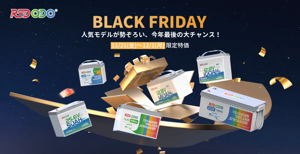 2025年のAmazonブラックフライデーが迫っていますが、エネルギー製品をお得に手に入れられる絶好のチャンスが到来しました。Redodo(レッドオド)は、11月24日(月)から12月1日(月)までの期間限定で、高性能なリン酸鉄リチウムイオン(LiFePO₄)バッテリーや充電器、インバーター、MPPT太陽光充電コントローラーなどを年間最低価格で提供します。これらの製品は、オフグリッド生活やキャンピングカーライフを楽しむ人々にとって、非常に魅力的です。