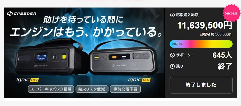 クラウドファンディングプラットフォームMakuakeで、超高い達成率3879%を記録したジャンプスターター「Ignic」シリーズが、ついに一般販売の予約を開始しました。このプロジェクトは、645名以上の応援購入者からの支援を得ており、従来のジャンプスターターを凌駕する存在感を放っています。以下では「Ignic」の特長や使用方法について詳しく解説します。