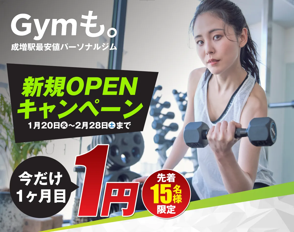 運動不足を感じている方、健康を意識したい方、最近ダイエットをしようと決意した方など、成増地区でパーソナルジムを探している方々に「Gymも。」はぴったりの選択肢です。今だけの特別な1円キャンペーンをぜひ利用して、ジム探しの一歩を踏み出してみてください。スタッフ一同、皆さまのご来店をお待ちしております!