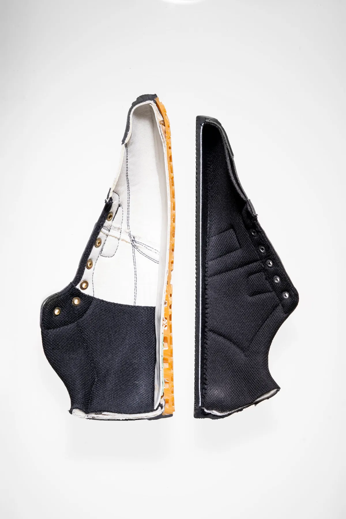 「JKP-#2」では、指を広げられるように設計された新しい靴型(シューラスト)が採用されています。この設計により、大きく開脚した姿勢でも力を込めやすく、競技者が地面を掴む感覚をさらに引き出します。また、靴内部には特別な素材が使われ、足の動きを抑制し、さらなる安定性を実現しています。
